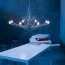- Lightweight Chandelier by Foscarini is a suspension lamp comprising a lightweight geometric frame in anodised metal with blown satin glass elements. This chandelier reached a diameter of 120 cm, developing eight arms on its base, was constituted by approximately one hundred linear elements hand-soldered to compose a frame. Lightweight was an anomalous but significant product for Foscarini. Anomalous in its identification with semi-handcrafting production methods, which the companies versatility allowed it to confront and respond to; significant because it dialog with an interesting concept of design, strongly characterized by visual impact, which lay within the contemporary culture of the design project. A perfect addition to your furniture collection, with class and elegance. With its modern look and feel, this contemporary pendant light can easily complement your existing decor. This modern pendant light will be hard not to notice when you use it as your living room lighting, bar area lighting, retail store lighting, decorative lighting, showroom lighting, hotel lighting, hallway lighting and more.